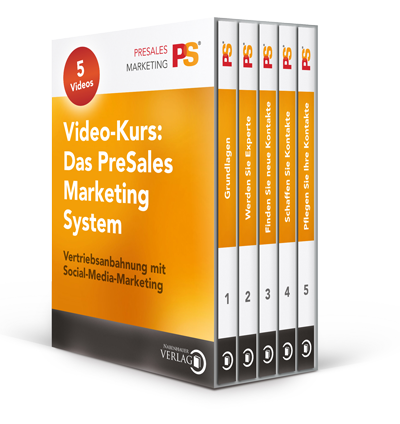 Der PreSales Marketing Video-Kurs vermittelt Ihnen in fünf aufeinander aufbauenden Teilen, wie das PreSales Marketing funktioniert.